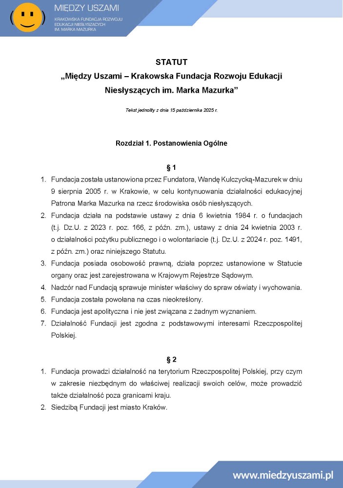 Statut został zaktualizowny jesienią 2025 roku